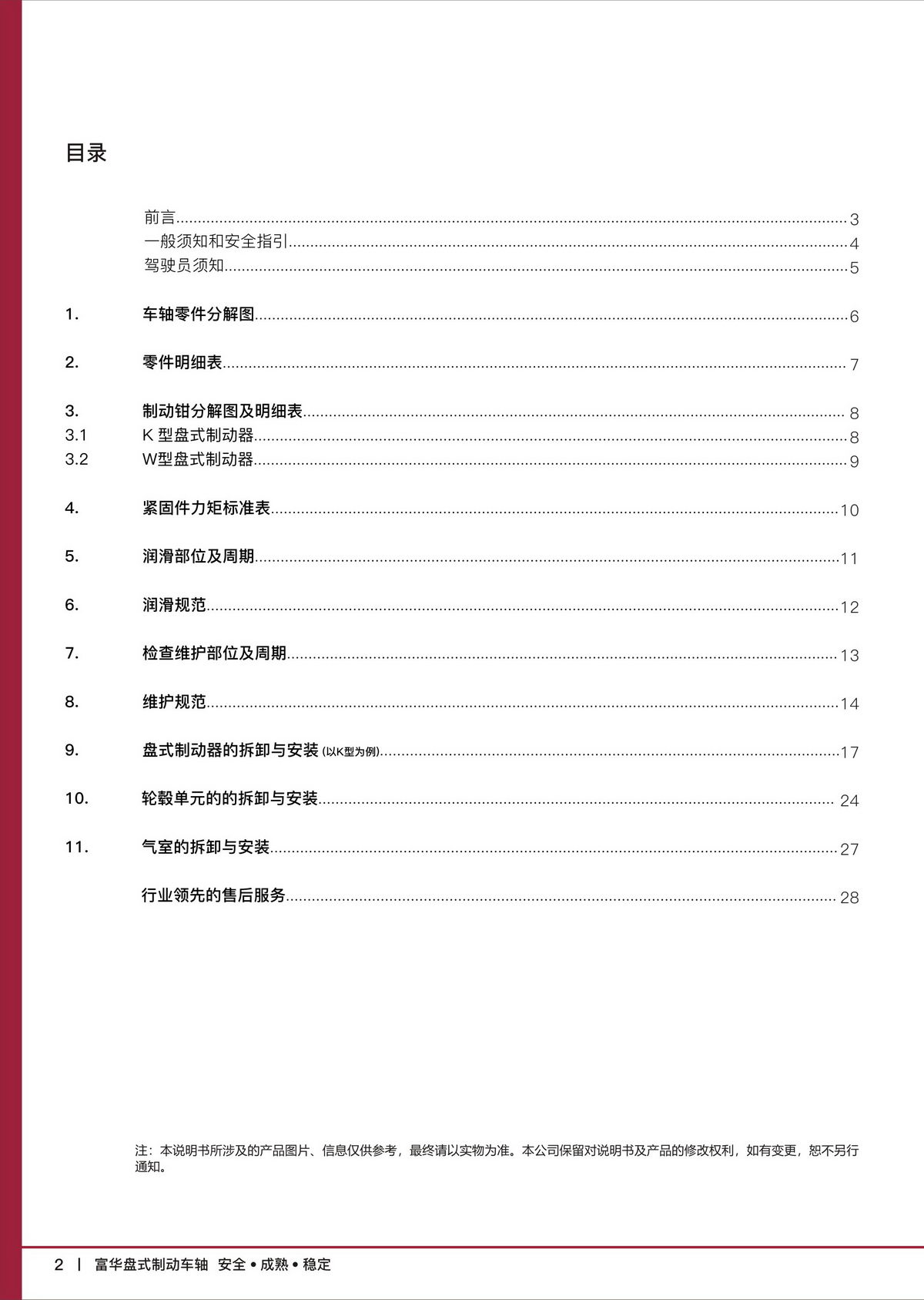 富華盤式制動車軸【產(chǎn)品維護(hù)保養(yǎng)手冊】