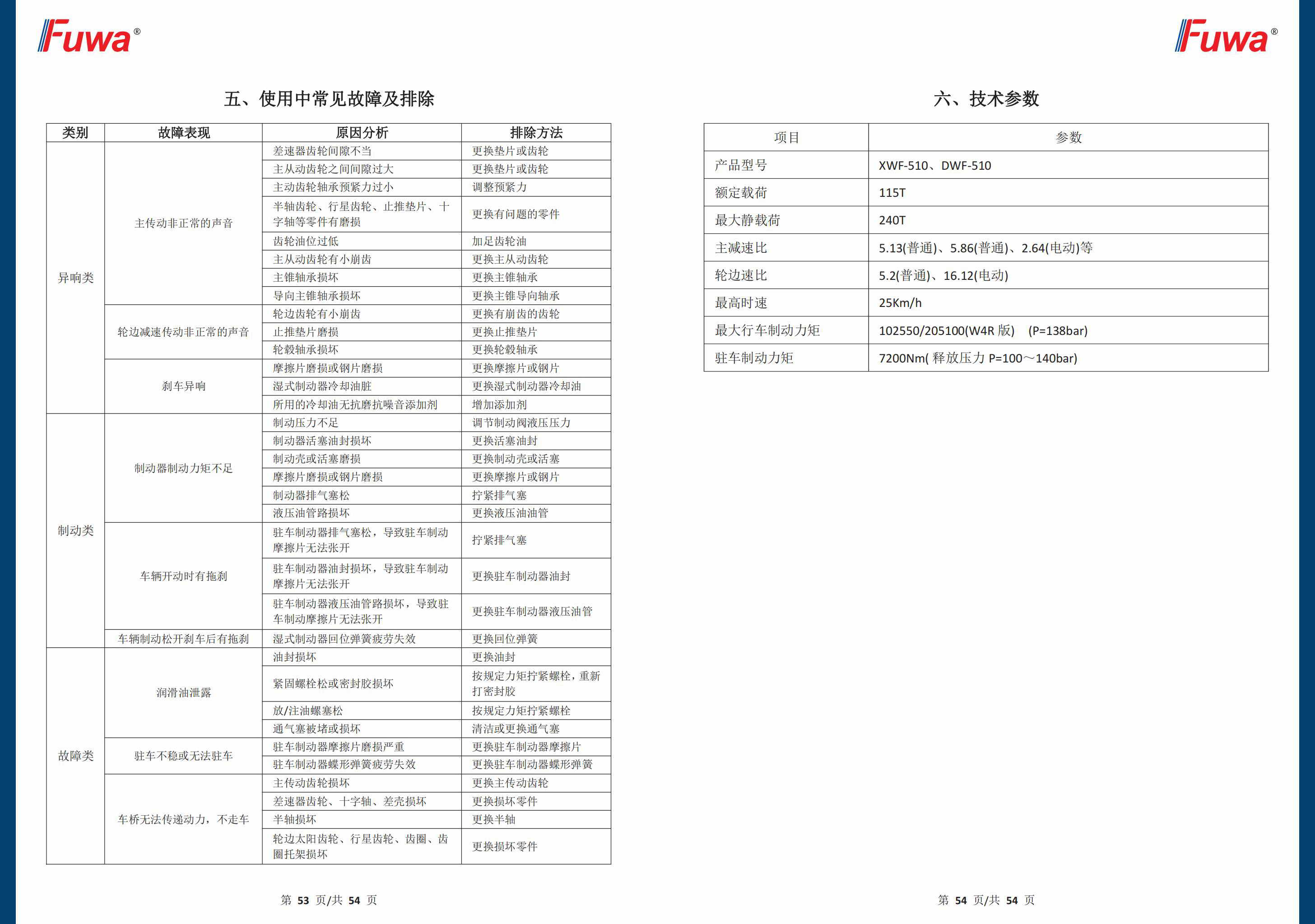 (正面吊)XWF-510 115噸濕式驅(qū)動橋總成產(chǎn)品維護保養(yǎng)手冊