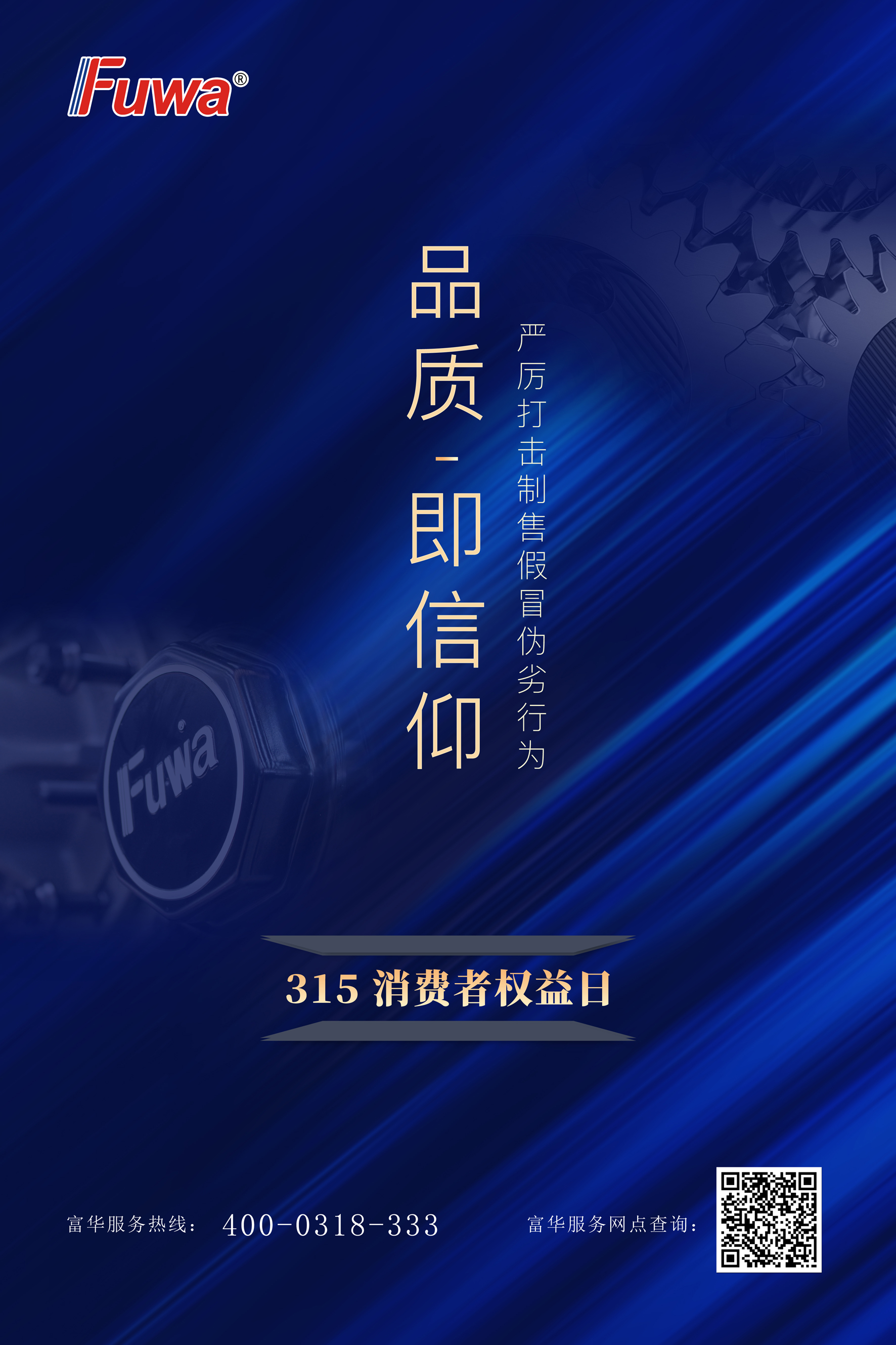 值此一年一度的3.15消費者權(quán)益日來臨之際,廣東富華將持續(xù)打擊制售假冒偽劣行為,并溫馨提示廣大消費者:選購富華車軸及零配件時請正確識別假冒偽劣產(chǎn)品,謹(jǐn)防利益受到侵害!